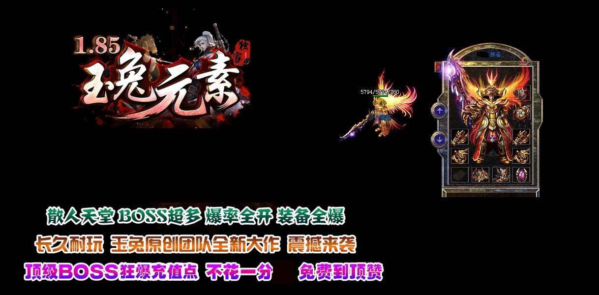 彻底封死外挂,无加速。无任何脱机外挂,憋尿打宝,屌丝逆袭女神!新区爆率全开!